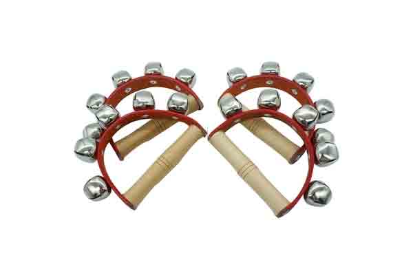榉木手柄,电镀金属铃铛,红色皮带,亚光PU漆面。